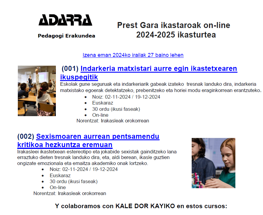 Laster hasiko gara! Ikastaro horietan parte hartzera gonbidatzen zaitugu, denon artean ikasle guztien inklusioan aurrera egiten jarraitzeko, ekitatea, ongizate emozionala edo kalitateko hezkuntza lantzea aukeratu beharrik izan gabe, baizik eta alderdi horiek guztiak aldi berean indartuz.